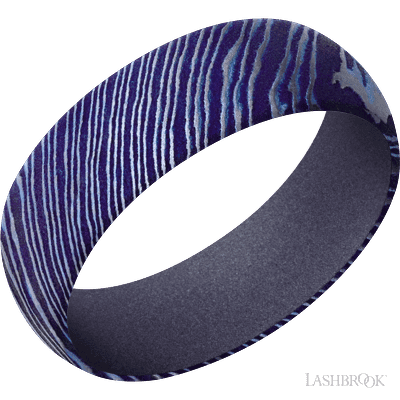 7 mm wide Domed Titanium Damascus band featuring a Crushed Orchid sleeve.