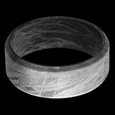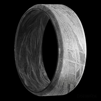 8 mm wide Beveled Meteorite band featuring a Forged Carbon Fiber sleeve.