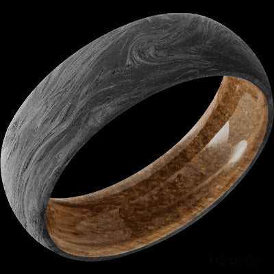 7 mm wide Domed Forged Carbon Fiber band featuring a Whiskey Barrel sleeve.