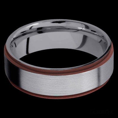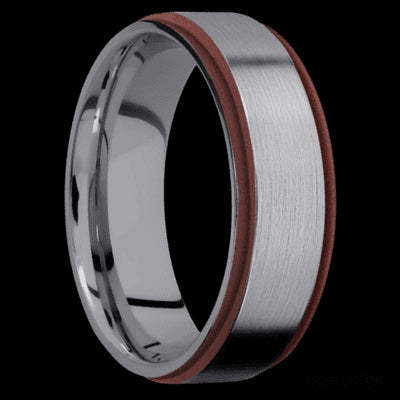 7 mm wide/Flat Grooved Edges/Tantalum band with two 1 mm Edge inlays of Crimson.