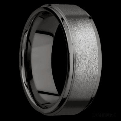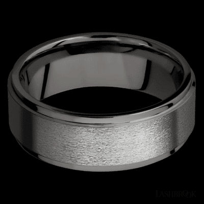 8 mm wide Flat Grooved Edges Tantalum Noir band.