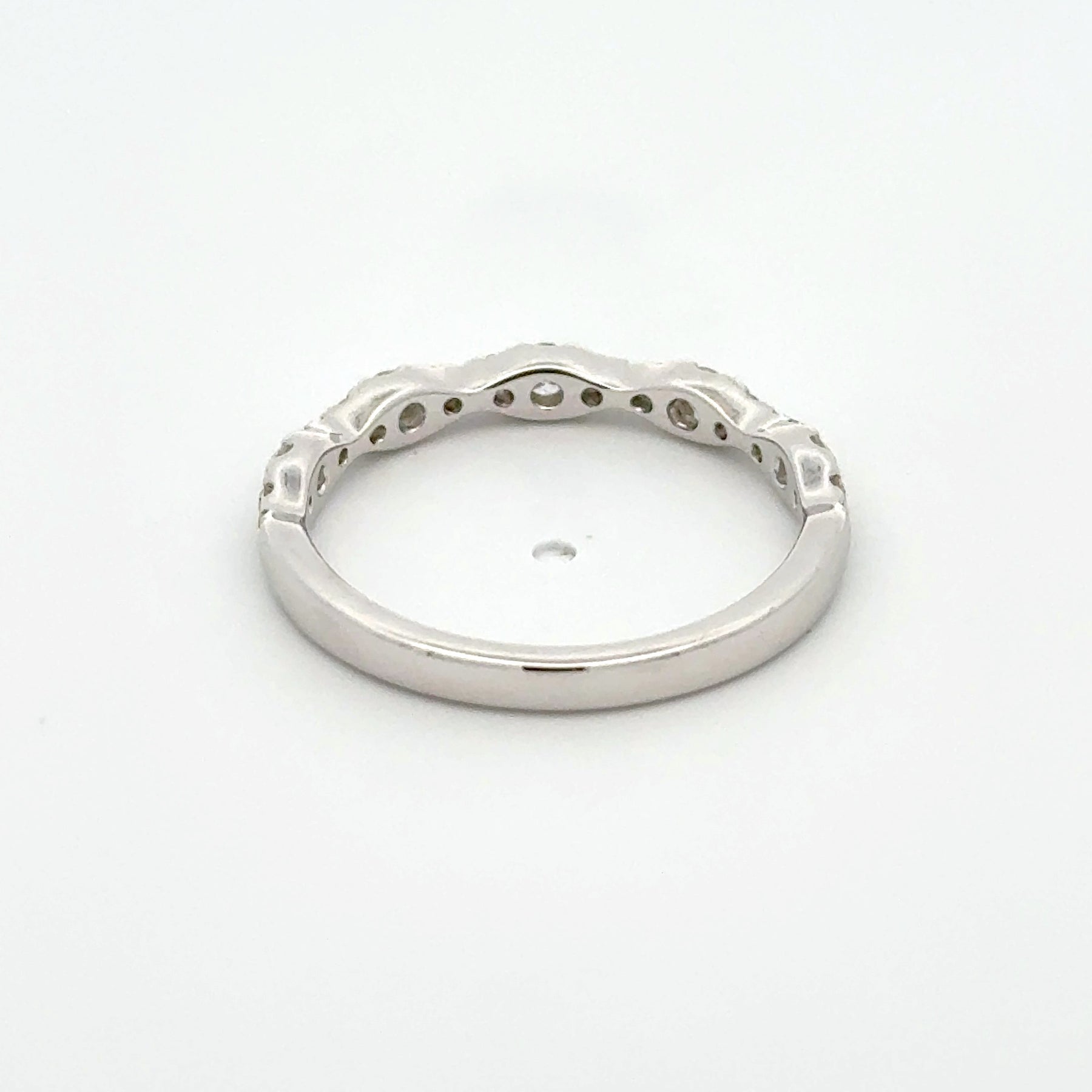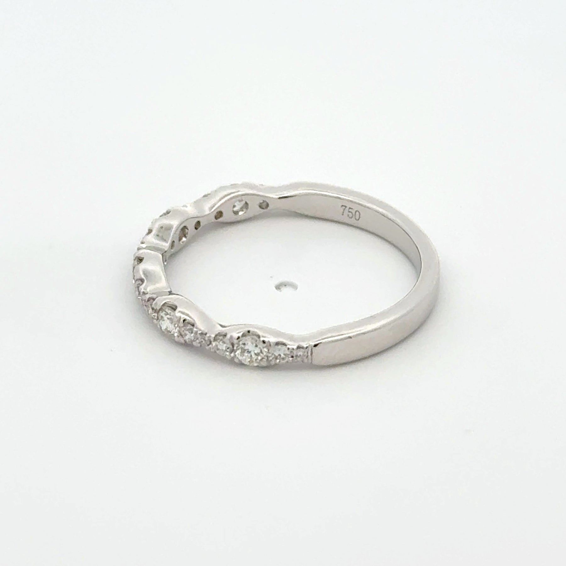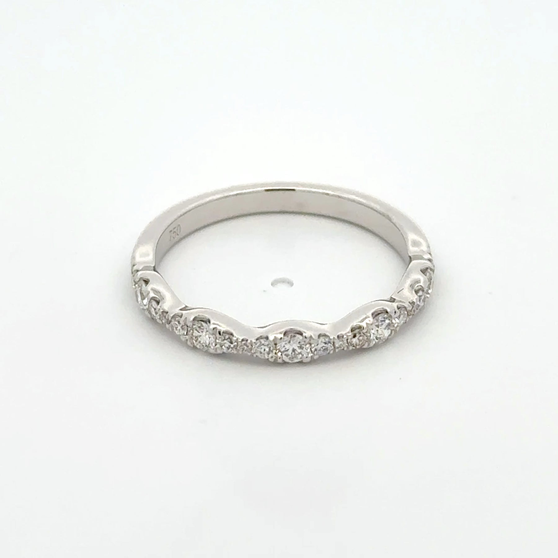 Celebrate your everlasting love with this exquisite white gold ring. This ring features meticulously set, round cut diamonds that encircle the band, creating a seamless display of brilliance and fire. A timeless symbol of commitment, perfect for any occasion. 0.36 total weight round Diamond 18 karat white gold 0.36 total diamond weight