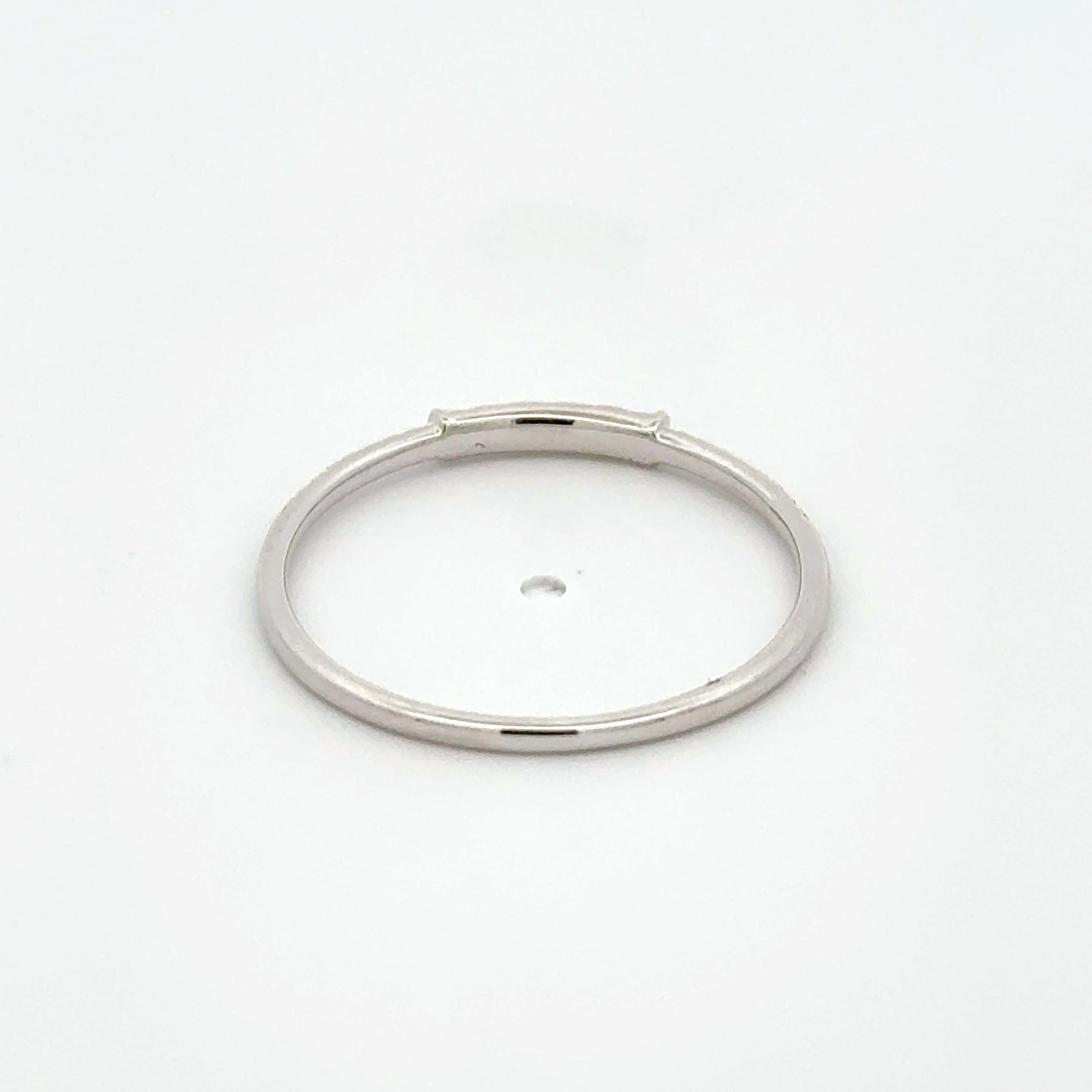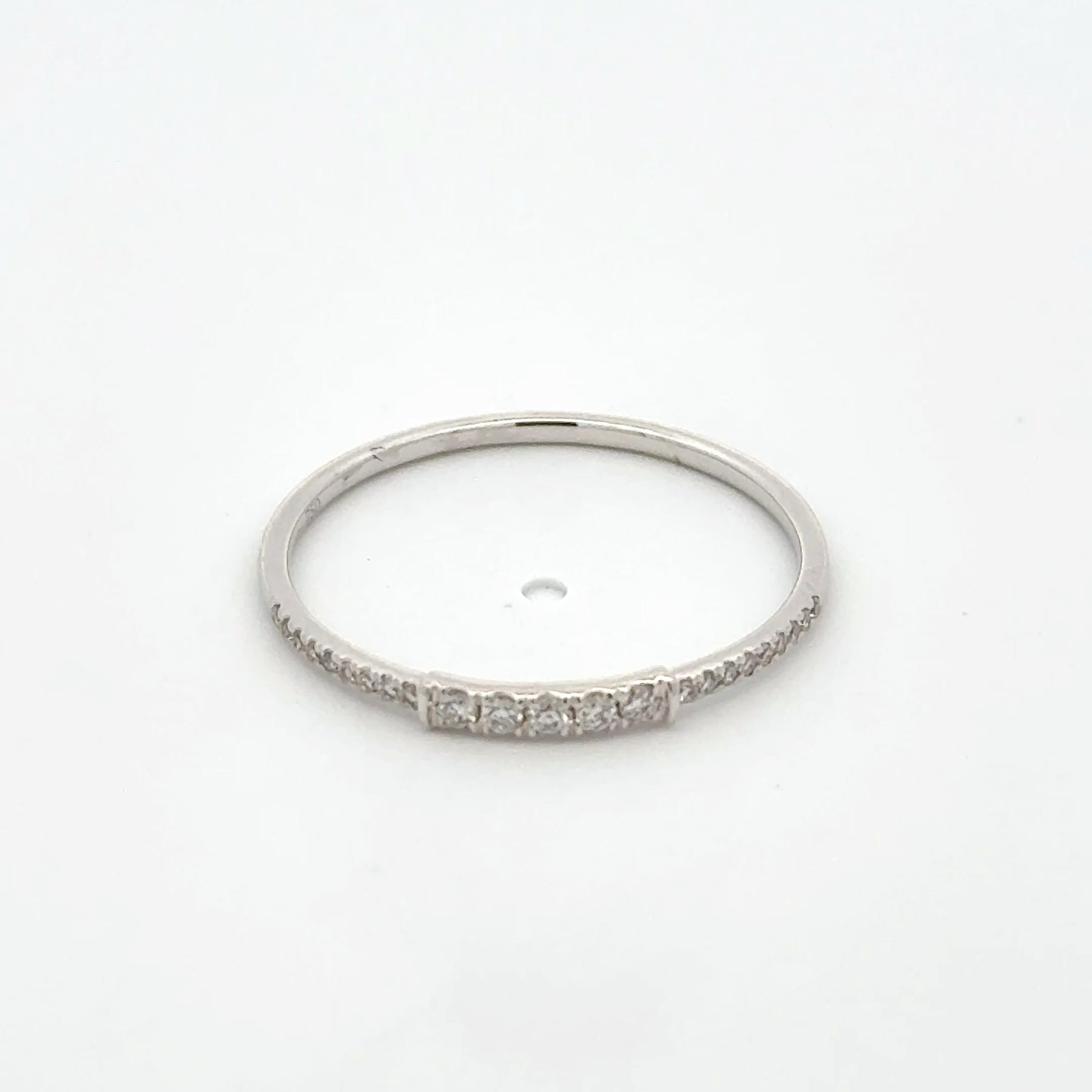 This exquisite eternity ring features a band of lustrous white gold, meticulously crafted to showcase a continuous row of brilliant cut diamonds. Each diamond is carefully set to maximize its sparkle and fire, creating a mesmerizing display of light and elegance. A timeless symbol of everlasting love and commitment. 0.10 total weight round Diamond 18 karat white gold 0.10 total diamond weight