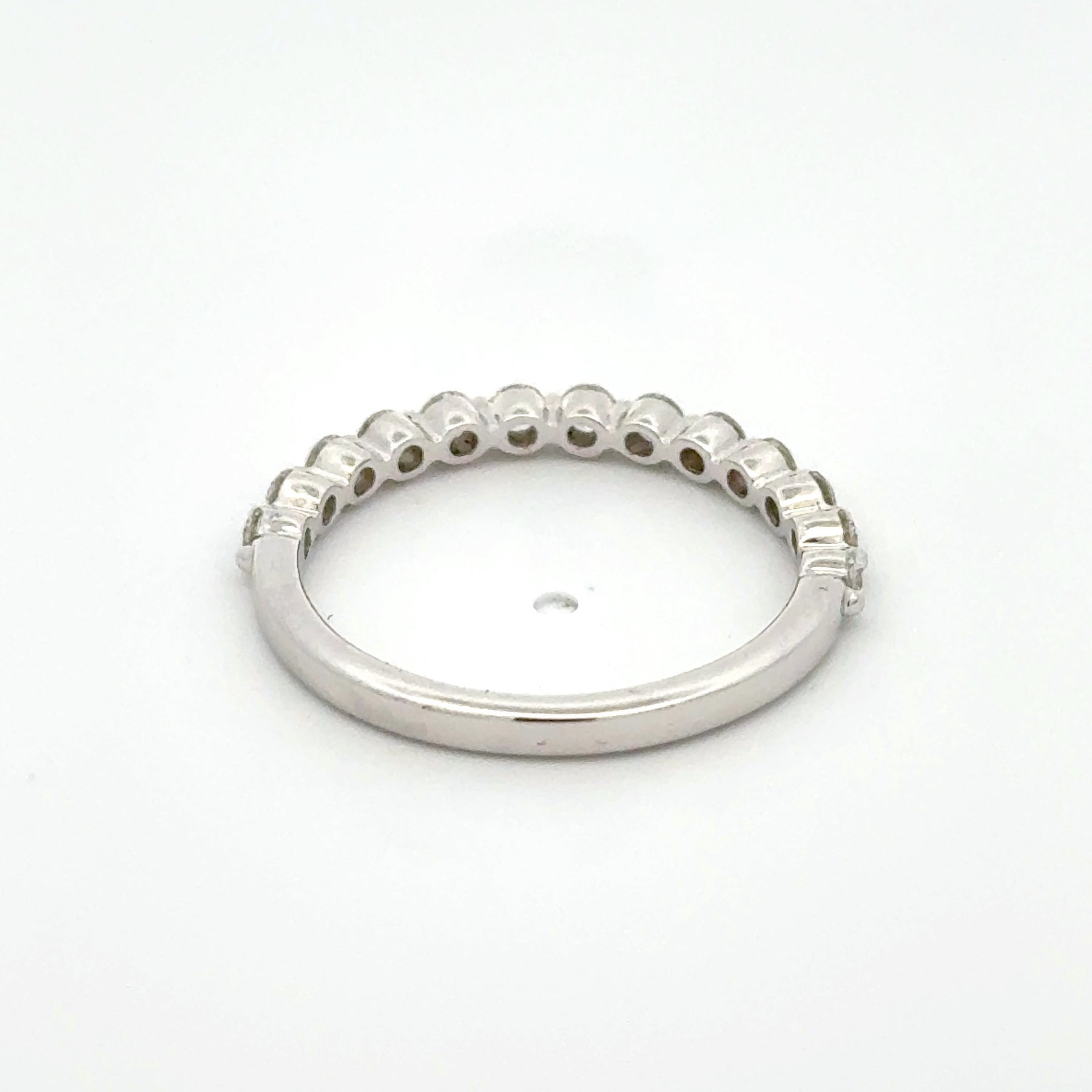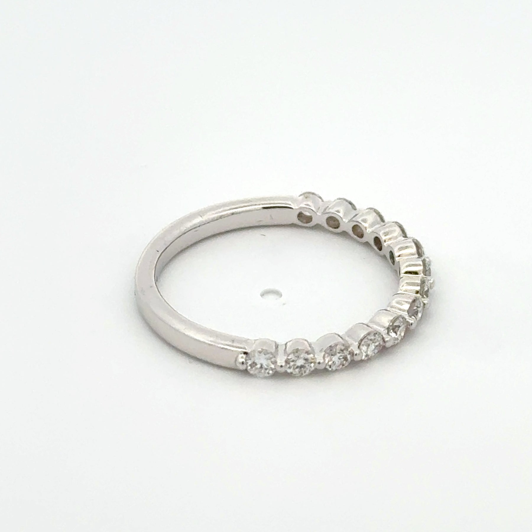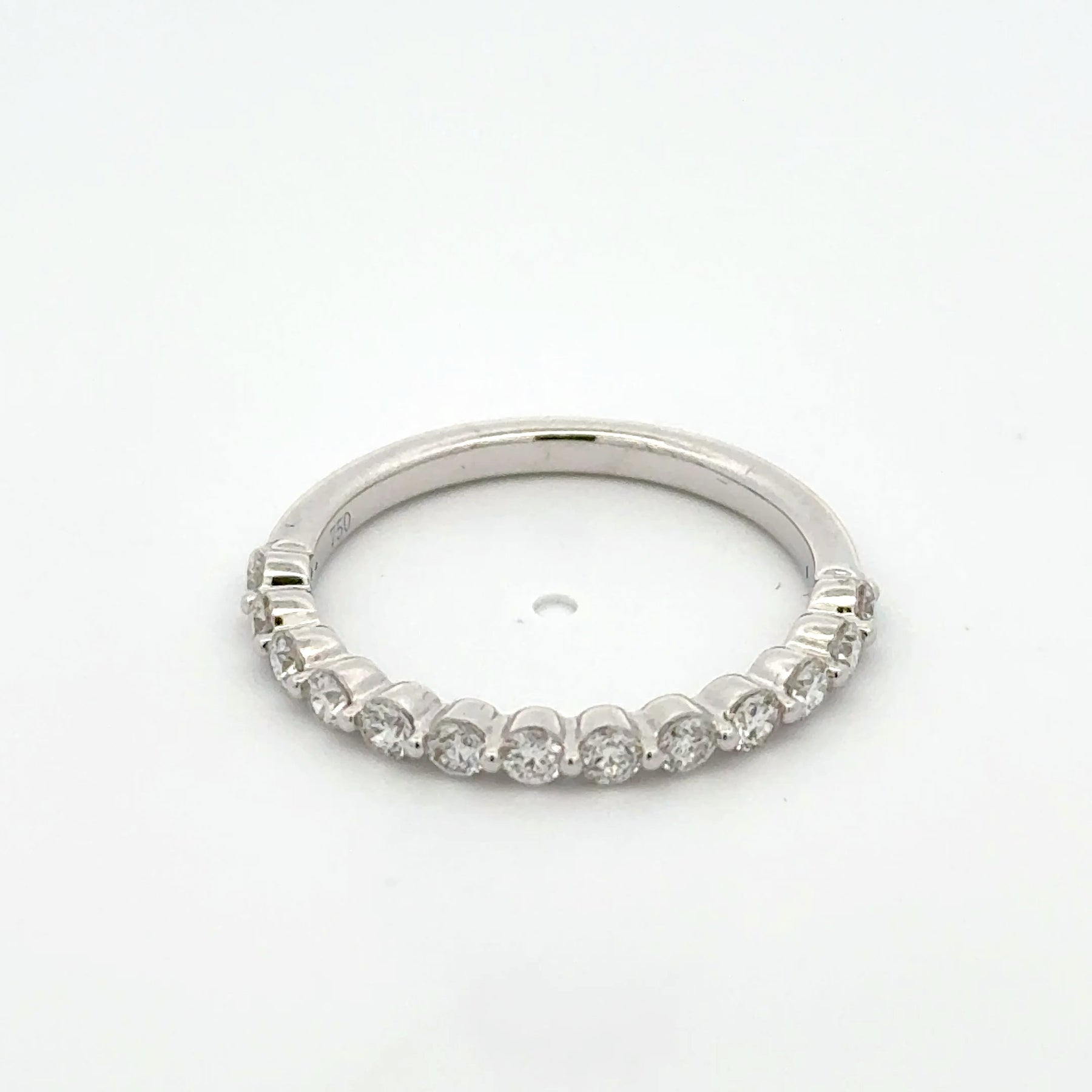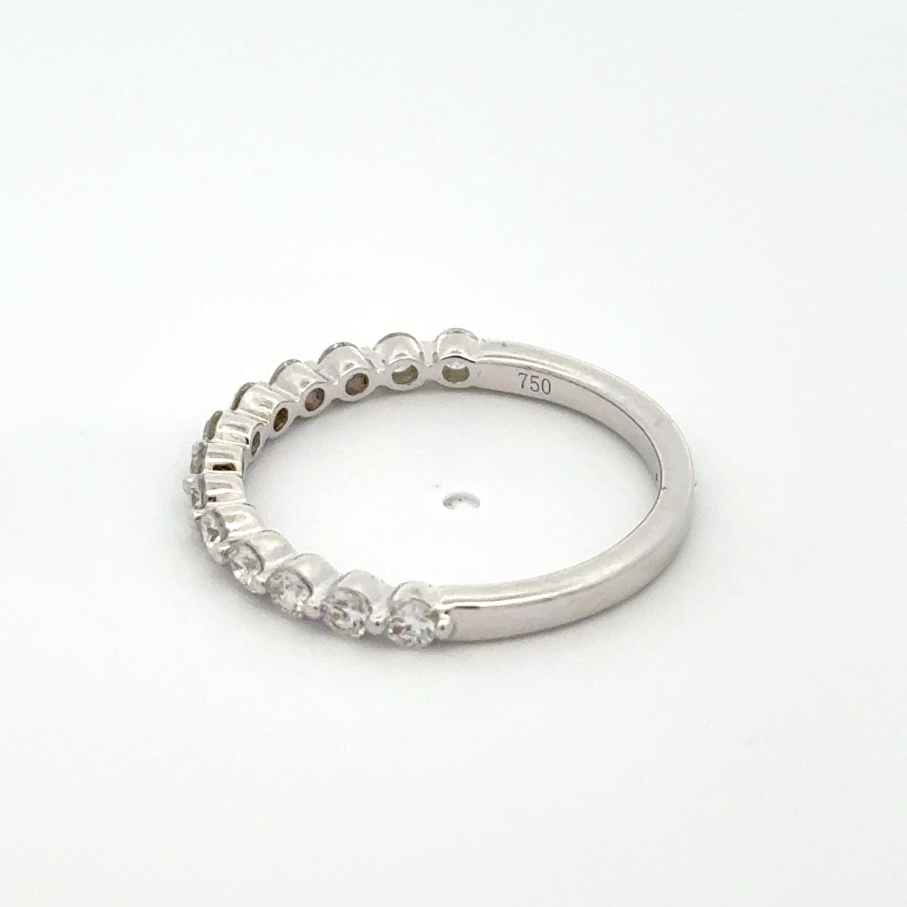 Embrace everlasting elegance with this exquisite white gold eternity ring. Featuring a seamless array of brilliant-cut diamonds, each stone is meticulously set to maximize sparkle and fire. A timeless design that symbolizes unending love and commitment, crafted for a lifetime of beauty. 0.48 total weight round Diamond 18 karat white gold 0.48 total diamond weight