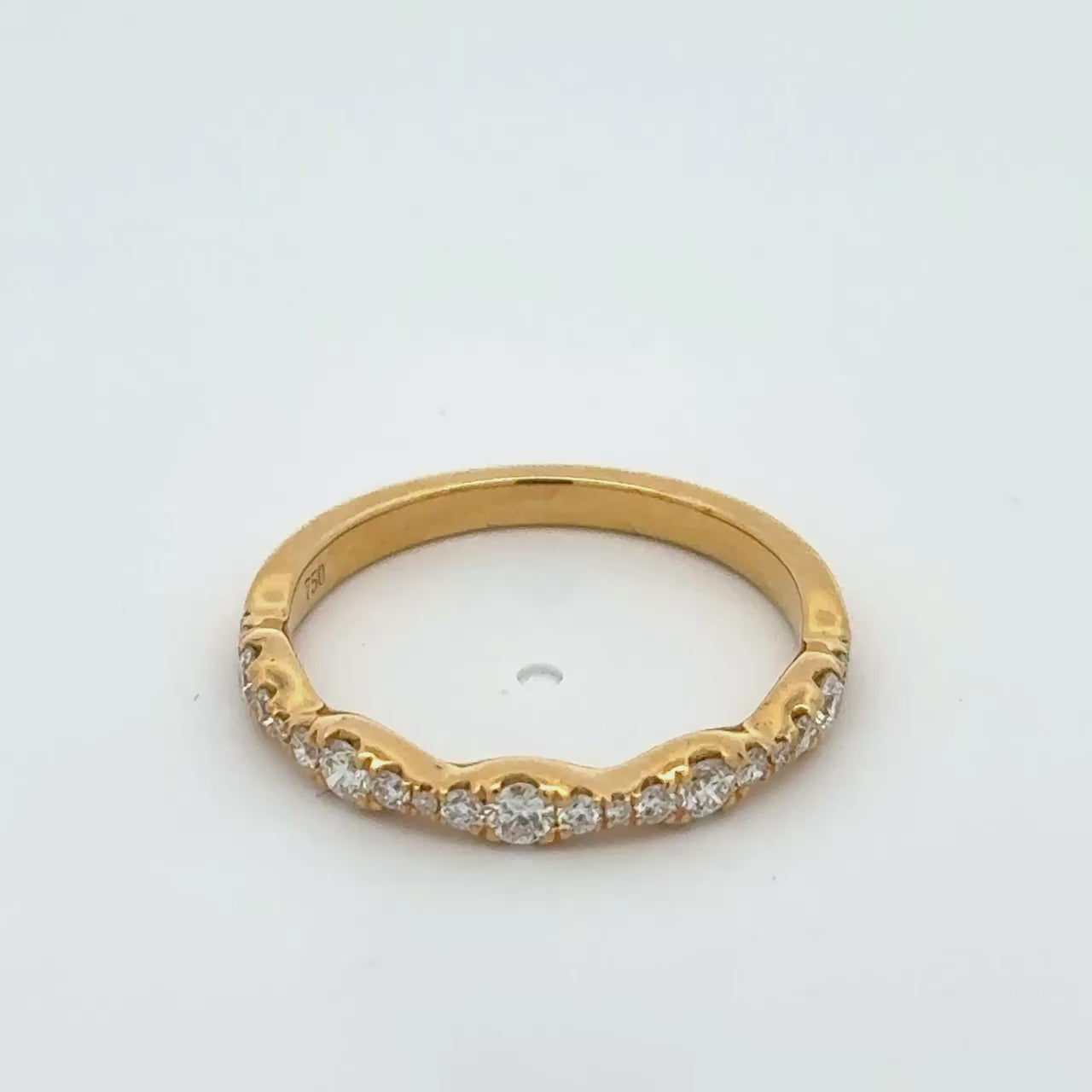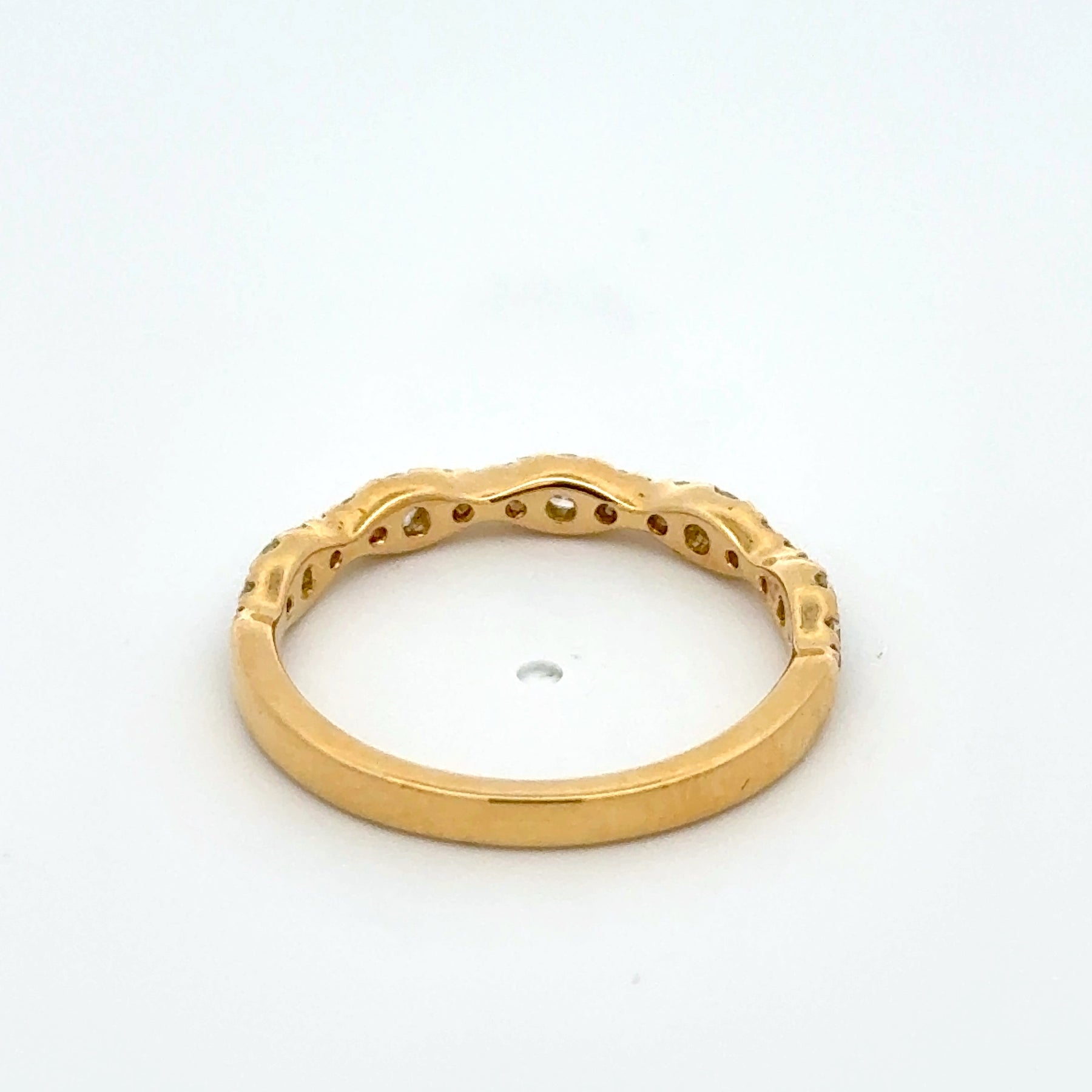 Elevate your style with this stunning yellow gold ring. The ring is beautifully crafted with round cut diamonds set in a classic channel setting, providing a timeless and sophisticated look. Each diamond sparkles brilliantly, enhancing the elegance of this exquisite piece. 0.35 total weight round Diamond 18 karat yellow gold 0.35 total diamond weight