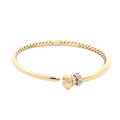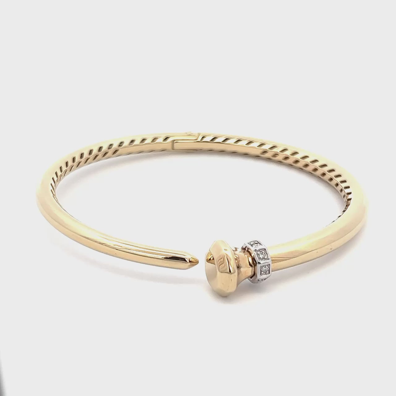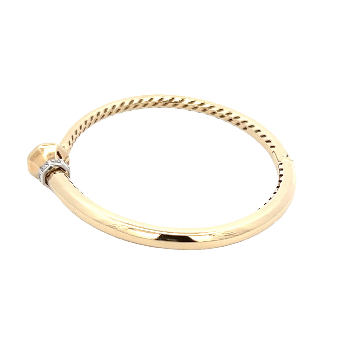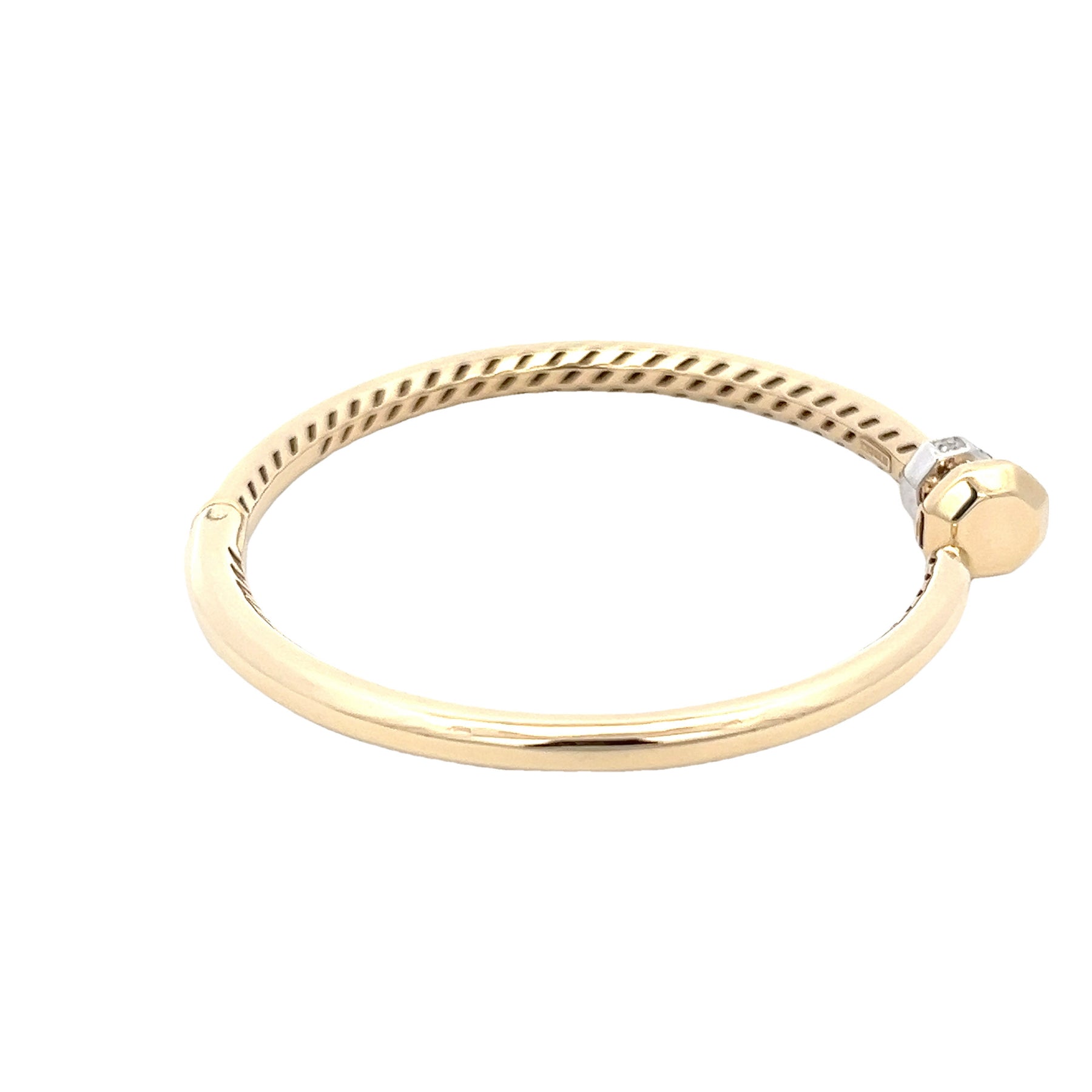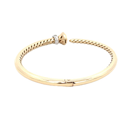 Discover the allure of this elegant gold twist bracelet, designed to elevate any outfit. Its unique twist design adds a modern touch, while the sparkling accents bring a hint of glamour. Perfect for both casual and formal occasions, this bracelet is a must-have accessory for every jewelry lover. 0.05 total weight round diamond. 14 karat yellow gold 0.05 total diamond weight.