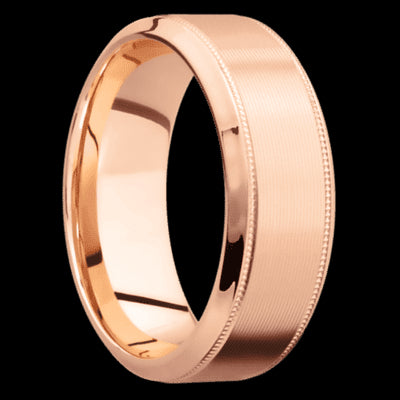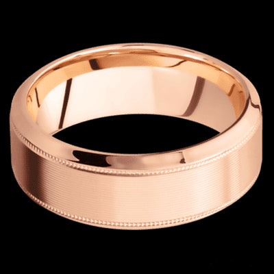 8 mm wide High Bevel Milgrain 14K Rose Gold band.