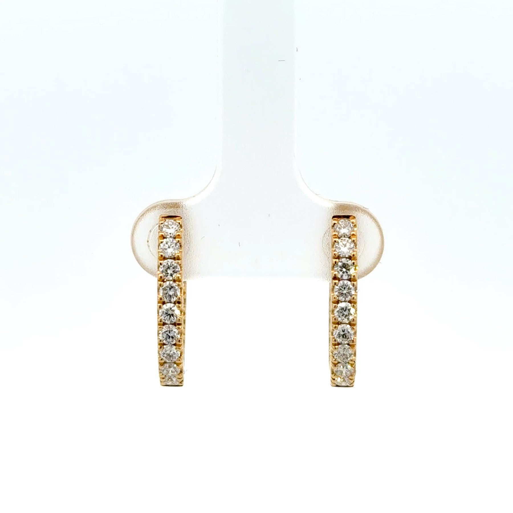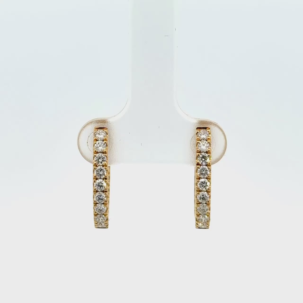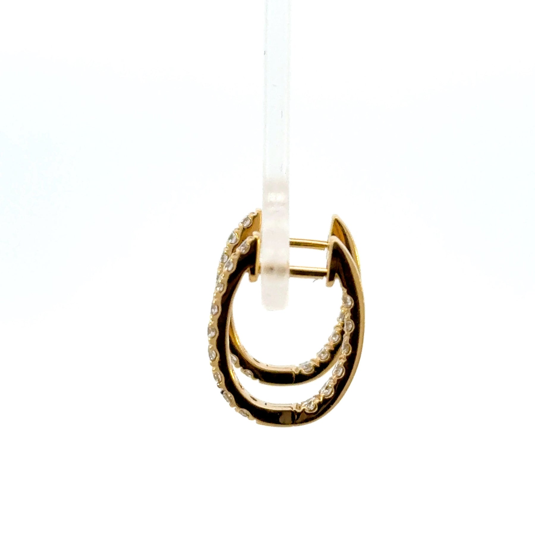 Dazzle in these exquisite yellow gold hoop earrings, each meticulously set with round brilliant cut diamonds. The classic design offers timeless elegance, making them a versatile addition to any jewelry collection. Perfect for adding a touch of sophistication to both day and evening ensembles. 30-0.96 total weight round Diamond 18 karat yellow gold.96 total diamond weight
