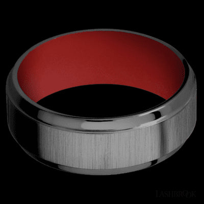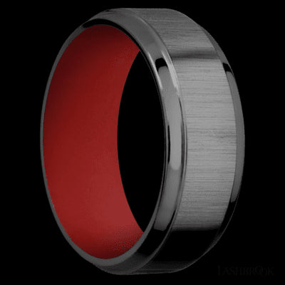 8 mm wide Stepped Bevel Zirconium band featuring a USMC Red sleeve.
