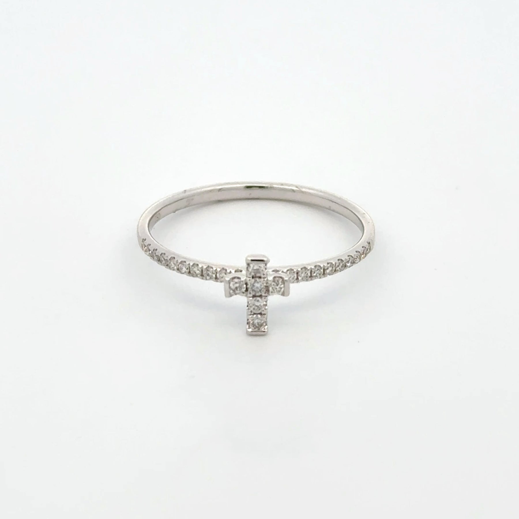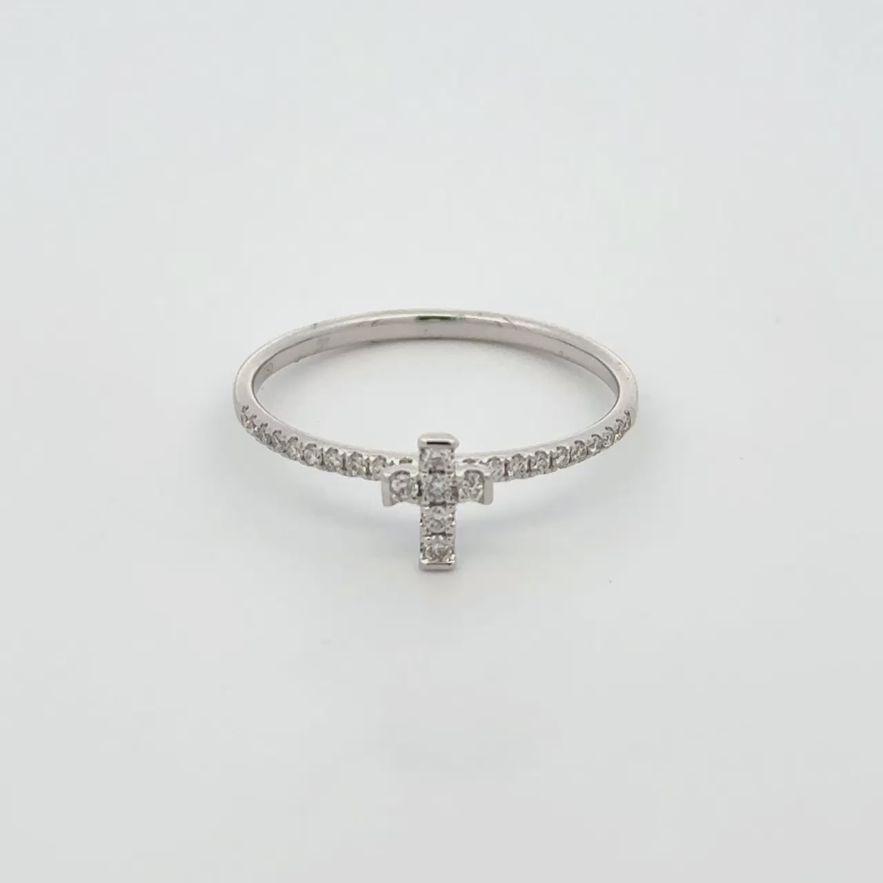 This exquisite white gold ring features a delicate multi stone design. Each colorless diamond is expertly cut in a brilliant style, ensuring maximum sparkle and fire. A timeless piece that radiates elegance and sophistication, perfect for adding a touch of luxury to any occasion. 0.15 total weight round Diamond 18 karat white gold 0.15 total diamond weight