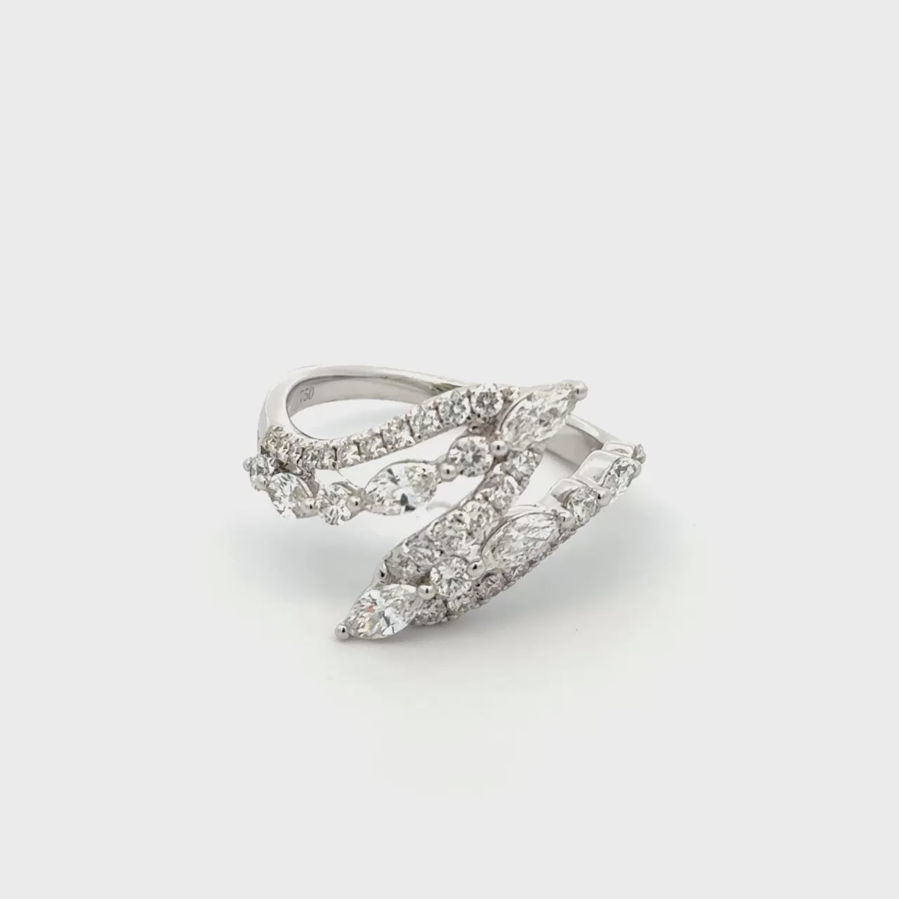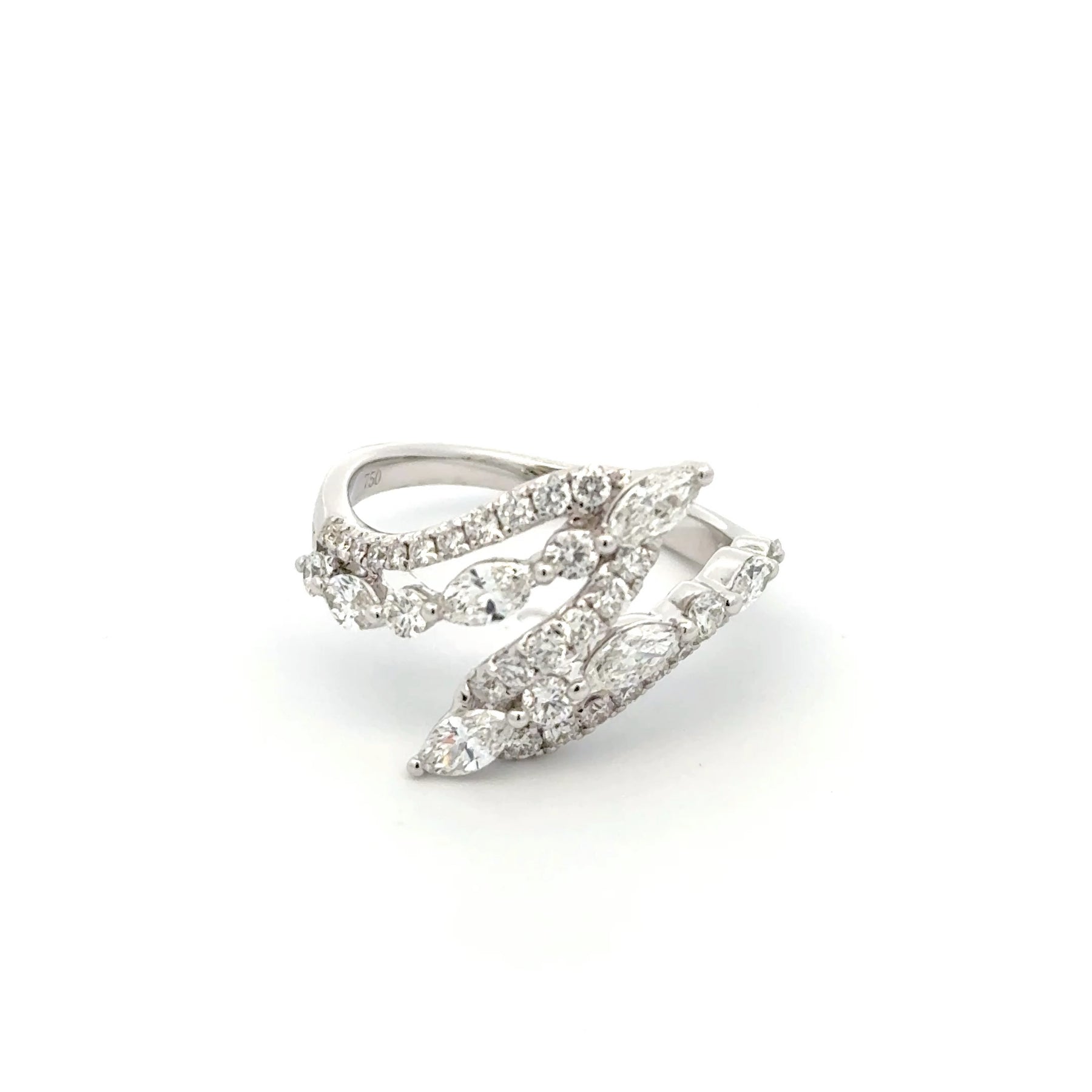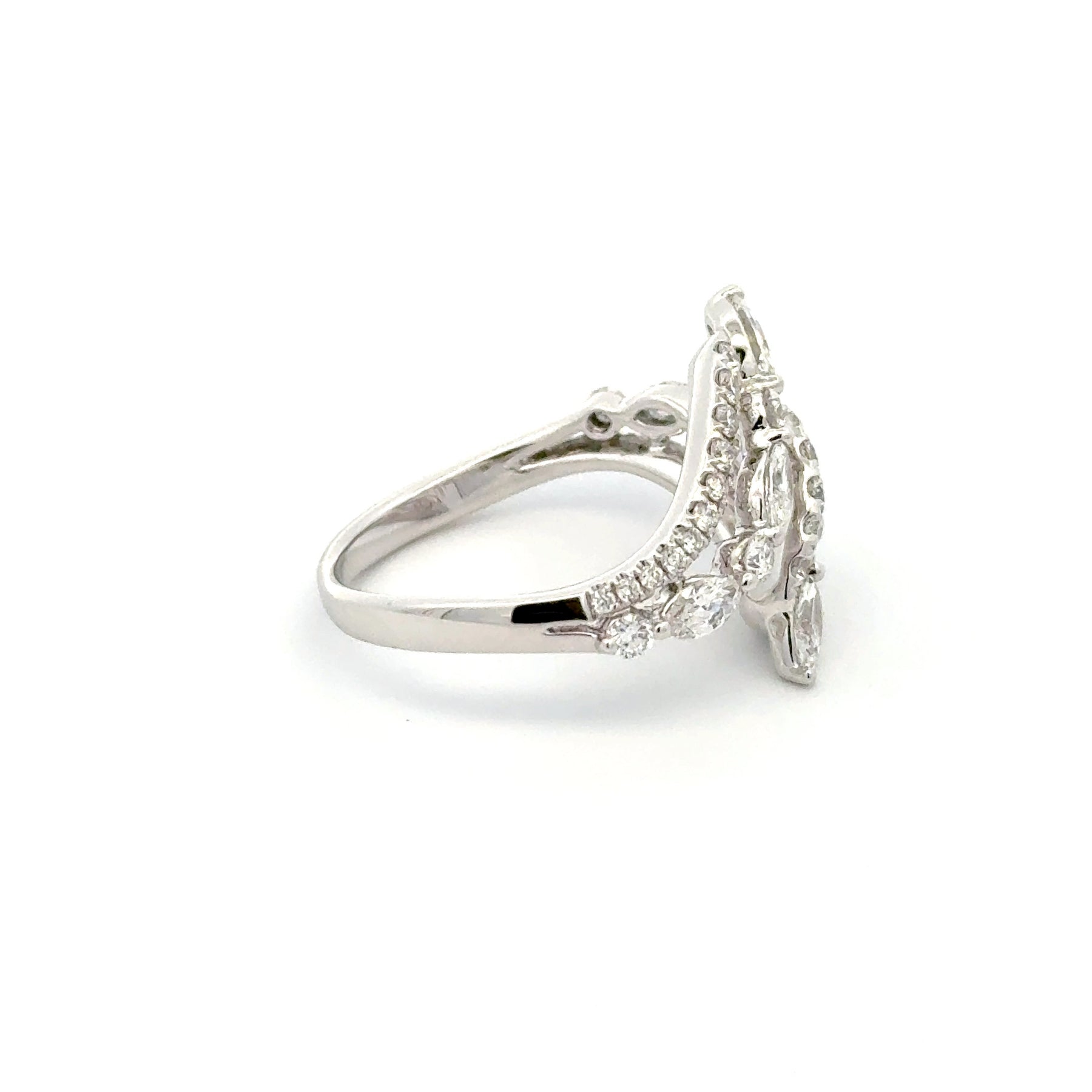 Elevate your style with this exquisite multi stone ring, crafted in lustrous white gold. This stunning piece features brilliant-cut diamonds in a marquise shape with mixed cutting style, creating a captivating sparkle. A statement ring that exudes elegance and sophistication. 1.27 total weight round V diamond 18 karat white gold 1.27 total diamond weight
