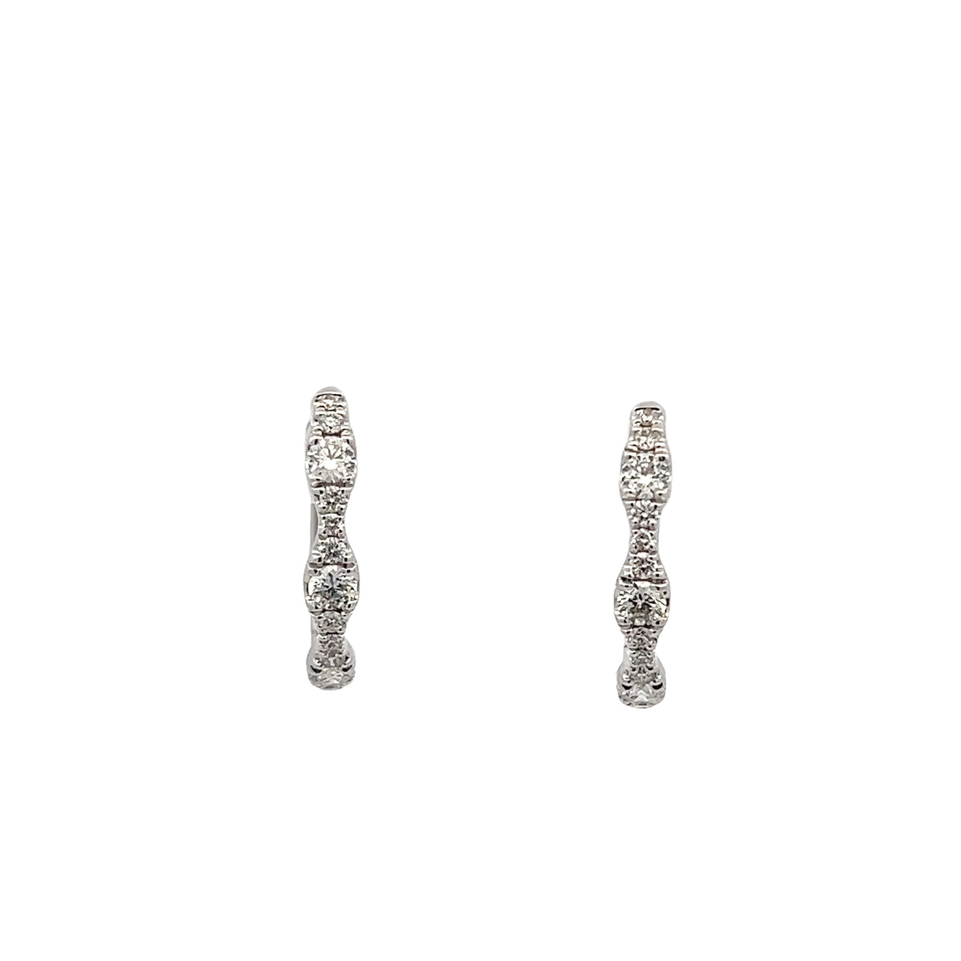 Discover the allure of these elegant Gold Hoop earrings, designed to add a touch of sophistication to any outfit. The intricate detailing and sparkling accents catch the light beautifully, making them perfect for both casual and formal occasions. 24-0.51 total weight Round diamond 18 karat white gold 0.51 total diamond weight