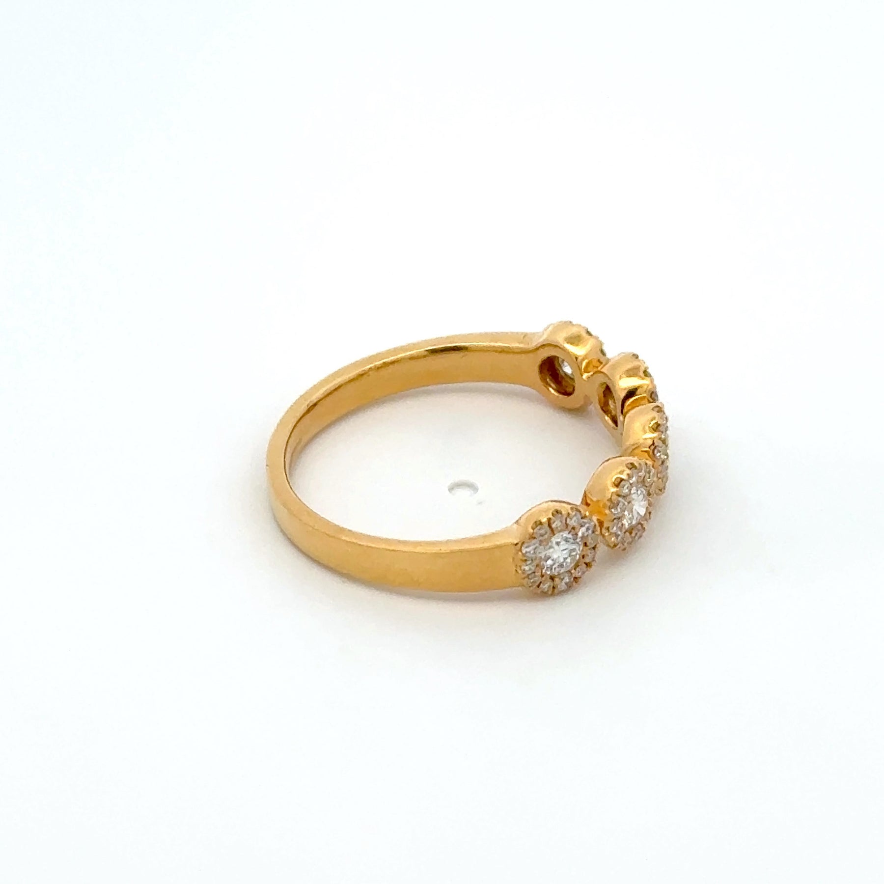 Indulge in the radiant allure of this yellow gold multi-stone ring. This exquisite ring features round cut brilliant diamonds, each meticulously set to maximize their brilliance. The timeless design and fine craftsmanship make it a treasured addition to any jewelry collection, perfect for adding a touch of elegance to every occasion. 0.48 total weight round Diamond 18 karat yellow gold 0.48 total diamond weight