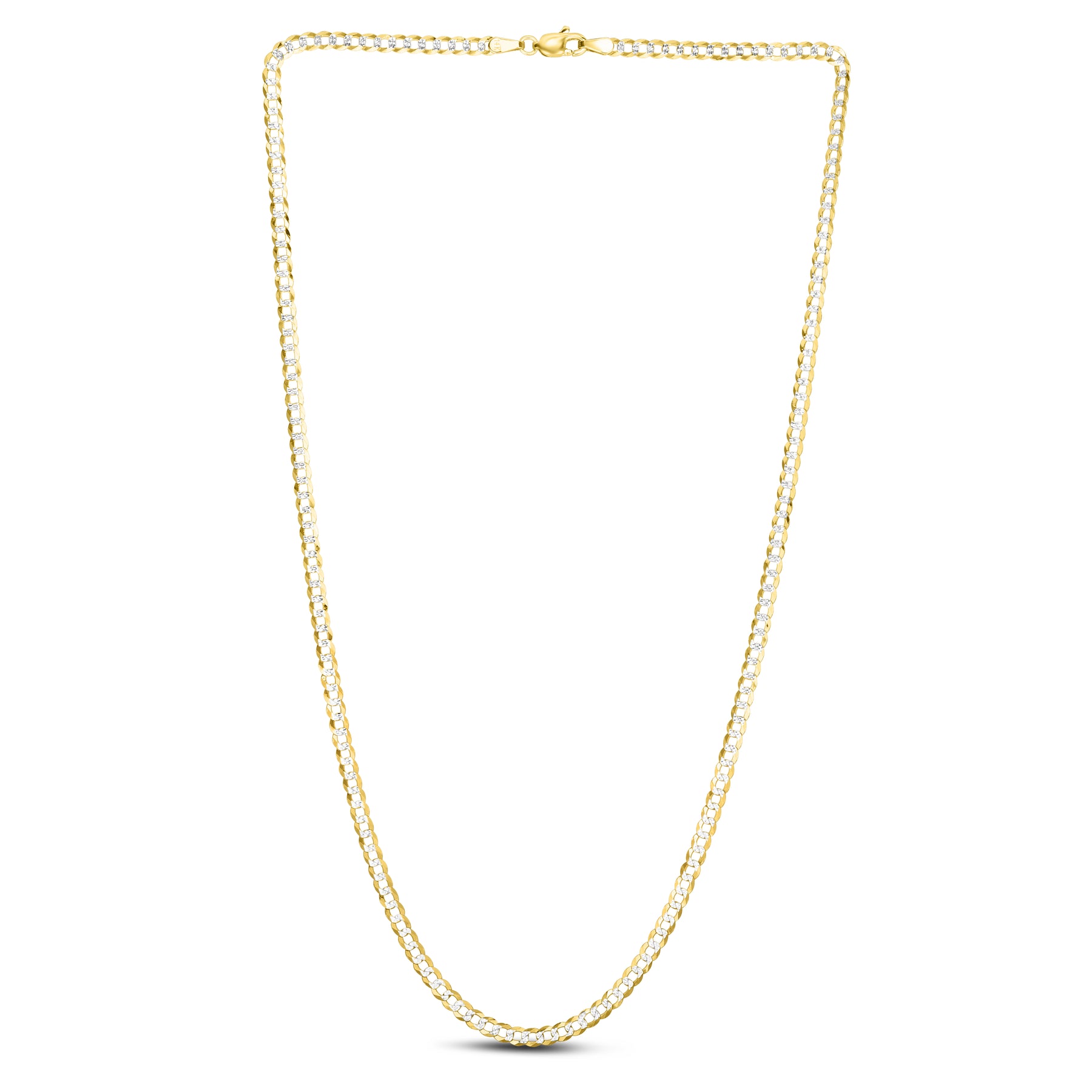 14K Yellow Gold 3.2mm White Pave Curb 18"" Chain with Lobster Lock