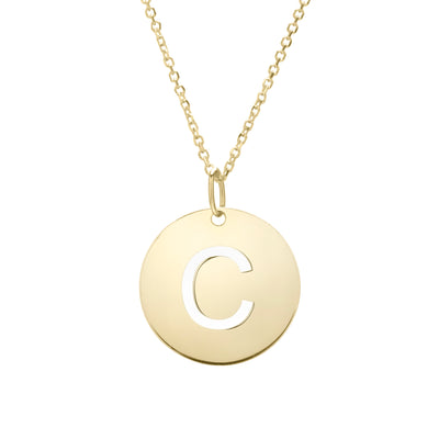 14K Gold Disc Initial C Necklace