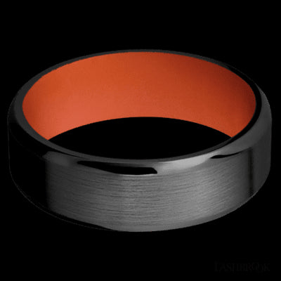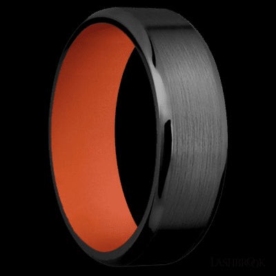 7 mm wide Beveled Zirconium band featuring a Hunter Orange sleeve.