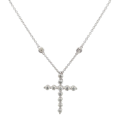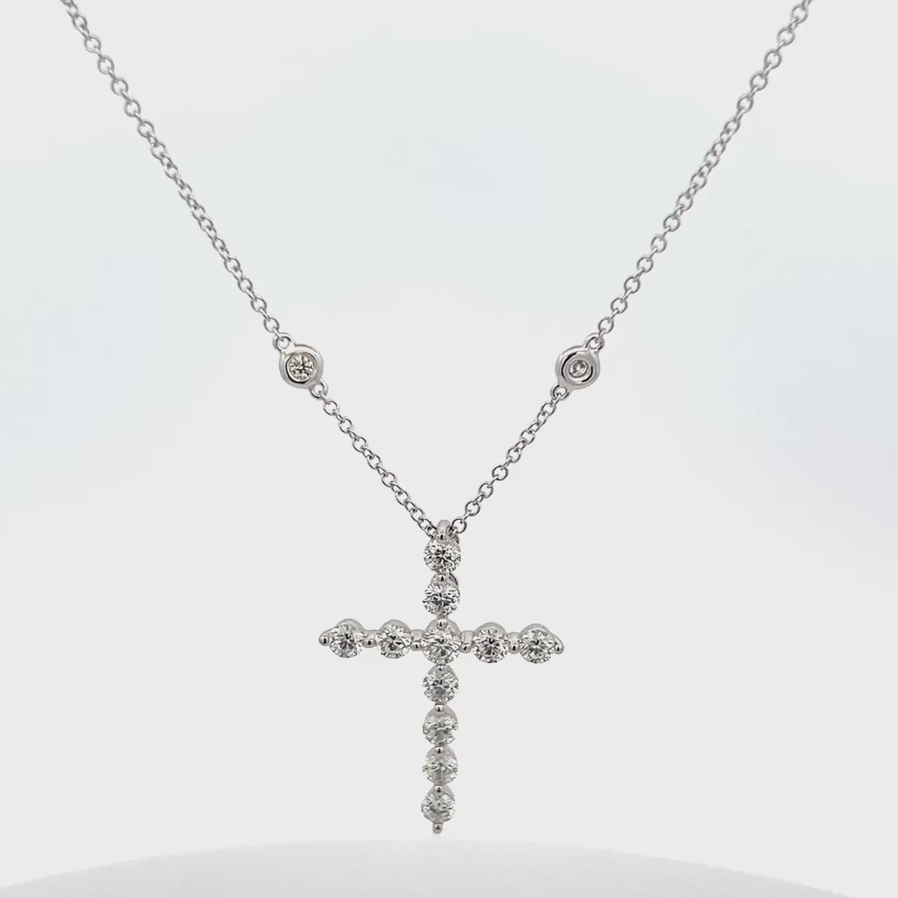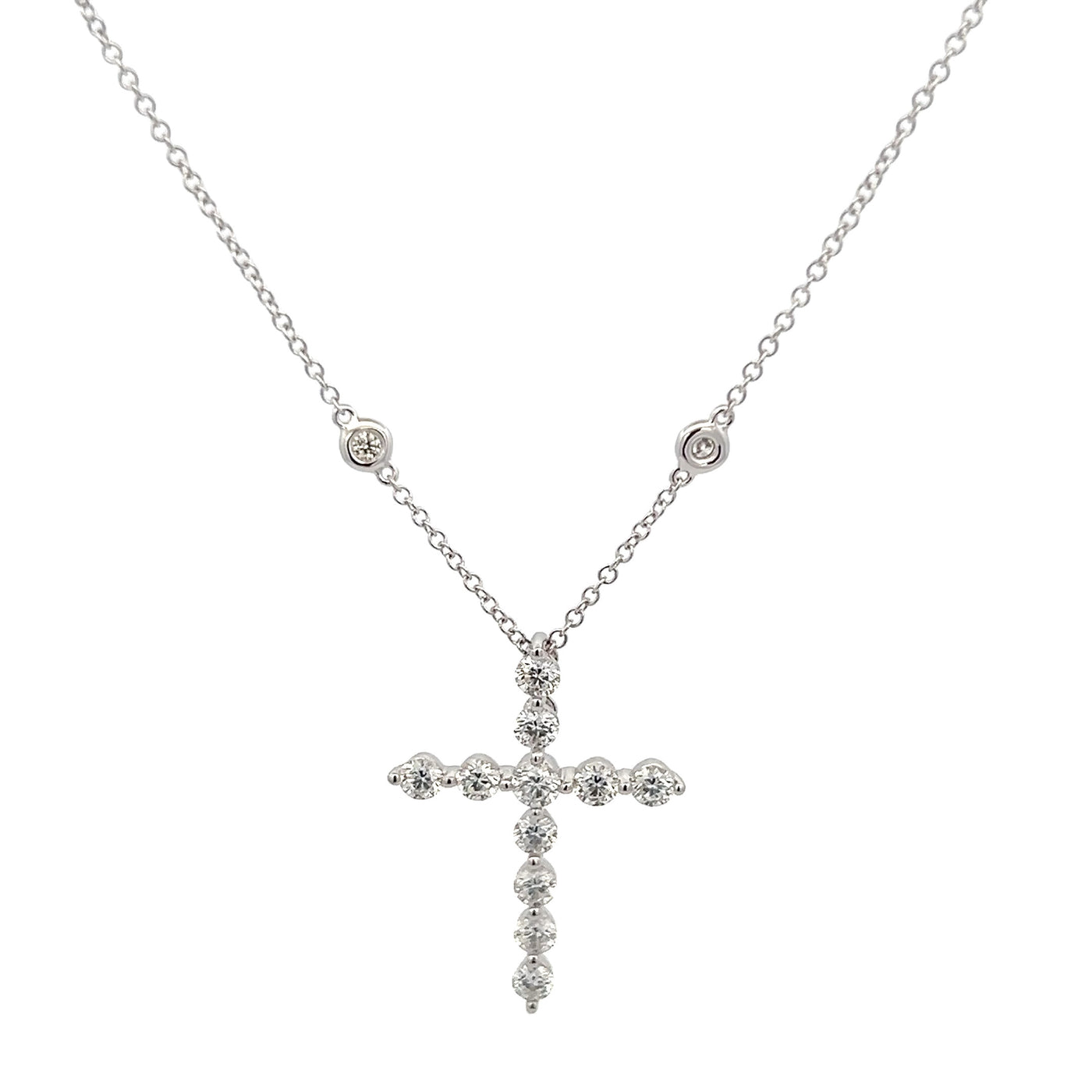 This stunning diamond cross pendant is a perfect blend of elegance and spirituality. Crafted with precision, it features sparkling diamonds that catch the light beautifully, making it an ideal accessory for any occasion. Whether worn as a statement piece or a subtle reminder of faith, this pendant is sure to turn heads. 10-0.21 total weight round diamond. 18 karat white gold 0.21 total diamond weight/0.88 total weight round diamond. 18 karat white gold 0.88 total diamond weight.